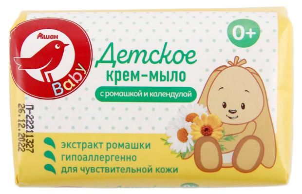Детское крем-мыло АШАН Красная птица детское с ромашкой и календулой натуральное изделие для ухода за детской кожей. Из качественного сырья. Благодаря ромашке и календуле, такое мыло мягко очищает и оказывает противовоспалительный эффект. С заботой о самых маленьких от АШАН Красная птица!