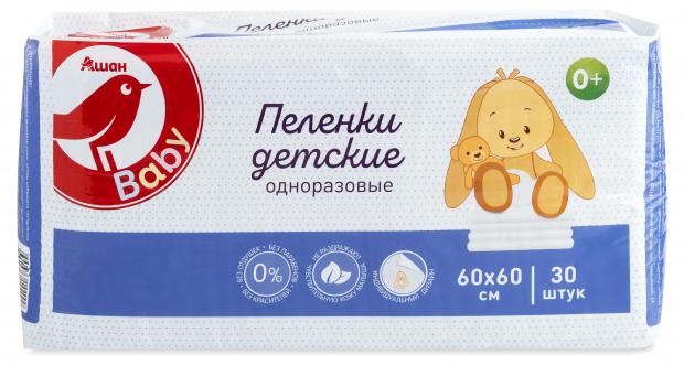 Пеленки одноразовые для детей АШАН Красная птица 60х60 см, 30 шт