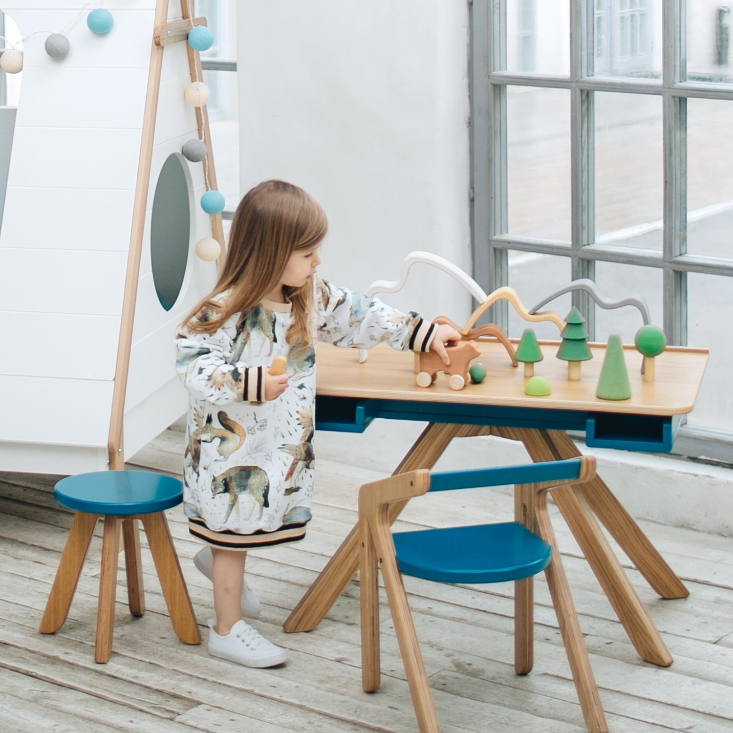 Ваш ребенок мечтает стать художником? Тогда ему идеально подойдет многофункциональный стол-мольберт "Malevich"! Его можно использовать для лепки, чтения или игры. Также это отличное место для хранения красок, альбомов, карандашей и кистей, ведь мольберт оснащен специальными полочками, к которым есть доступ при закрытой столешнице. Столешница изготовлена из фанеры, покрыта дубовым шпоном и выкрашена прозрачным лаком, поэтому царапины и вмятины не будут заметны так сильно, как на столешницах, покрытых эмалью.