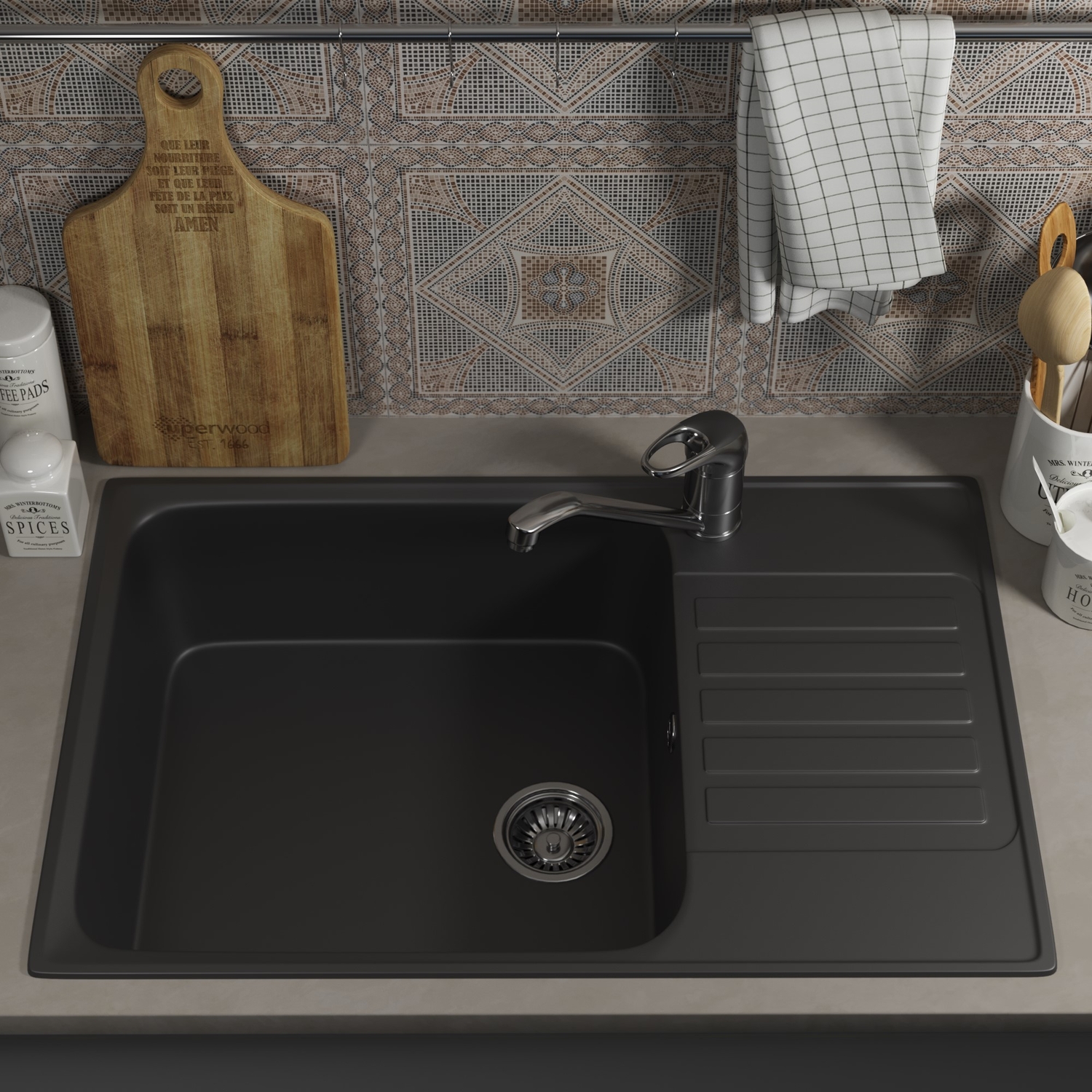 Кухонная мойка Uperwood 400 74 см 391020215 черная