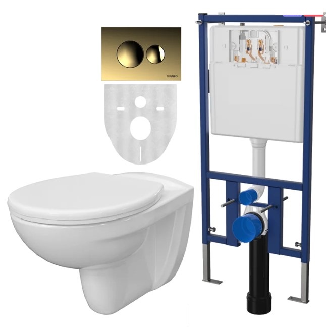 Комплект DIWO Анапа инсталляция + подвесной унитаз + крышка сиденье + кнопка 7315 золотая 580660