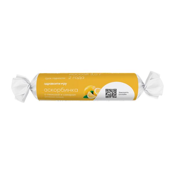 Аскорбинка Здрависити со вкусом лимона, с глюкозой и сахаром, 10 таблеток по 3 г (2 шт). Аскорбинка "Здрависити" со вкусом лимона, с глюкозой и сахаром — это витаминная добавка, содержащая аскорбиновую кислоту (витамин C), глюкозу и сахар, а также натуральный ароматизатор лимона. Витамин C является мощным антиоксидантом, который играет важную роль в поддержании здоровья иммунной системы, укреплении стенок кровеносных сосудов, регуляции образования коллагена и многих других процессах в организме.Глюкоза является основным источником энергии для организма, а сахар добавляет приятный вкус и помогает улучшить усвоение витамина C. Натуральный ароматизатор лимона придает таблеткам приятный цитрусовый вкус.Аскорбинка "Здрависити" со вкусом лимона, с глюкозой и сахаром рекомендуется принимать по 1 таблетке в день, запивая достаточным количеством воды. Продолжительность приема может варьироваться в зависимости от индивидуальных потребностей и рекомендаций врача.Перед началом приема таблеток рекомендуется проконсультироваться с врачом или фармацевтом, особенно если у вас есть какие-либо заболевания или принимаете какие-либо лекарства. Также важно следовать указанным на упаковке рекомендациям по дозировке и продолжительности приема.(10242645-2p)