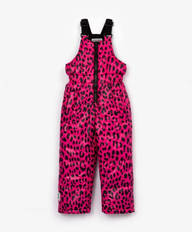 Полукомбинезон цвета фуксии с леопардовым рисунком придаст зимнему прогулочному гардеробу яркие краски. Очень теплый, удобный, уютный, полукомбинезон обладает всем необходимым функционалом для продолжительной прогулки. Снегозащитные внутренние манжеты, молнии на задних половинках брюк для регулировки объема изделия внизу, удобные карманы, теплая флисовая подкладка на грудке и ягодичной области делают комбинезон продуманным и комфортным. Комбинезон имеет регулирующиеся эластичные лямки. В оформлении модели использован светоотражающий шеврон с шрифтовыми элементами.