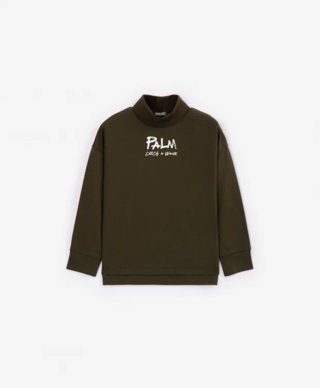 Мягкая уютная водолазка - незаменимый атрибут прогулочного гардероба в осенне-зимний период. В отличие от базовых вариантов, выполняющих исключительно функциональную роль, водолазка от Gulliver имеет особые черты. Модная свободная форма, спущенное плечо, заниженная линия спинки, а также шрифтовые принты на передней и задней части делают водолазку новой, интересной, свежей по восприятию.