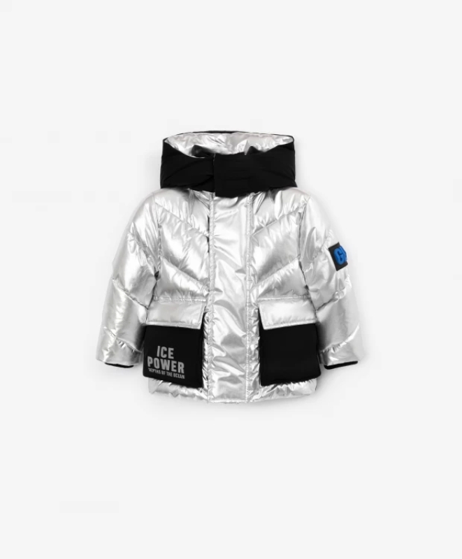 Теплая зимняя куртка из серебряной плащовки не позволит мальчику остаться незамеченным. Яркая, необычная, интересная, куртка привлекает свежестью дизайна и убедительными функциональными качествами. Подкладка из уютного флиса, надежный утеплитель искусственный пух, глубокий отстёгивающийся капюшон с высокой стойкой, объемные утепленные карманы с клапанами делают куртку неуязвимой перед сильными морозами. Дизайн модели сделан в лучших традициях Gulliver, построен на самых актуальных трендах сезона. Сочетание двух материалов: блестящей серебряной и черной матовой плащовок создает интересную игру фактур. Цветовой контраст основного материала, отделки и подкладки способствует свежему восприятию вещи. Куртка имеет все необходимые утяжки для защиты от продувания. На кармане и капюшоне расположены светоотражающие принты, способствующие безопасности мальчика в темное время суток.