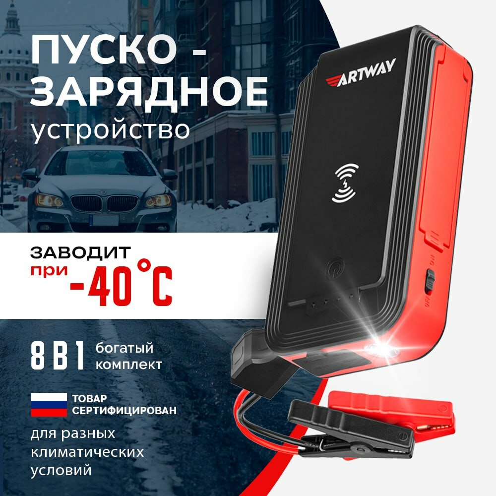 Пуско-зарядное устройство Artway JS-1016 до 16Ач, максимальный ток зарядки 1000A, стартовый ток до 500A, емкость аккумулятора 16000мAч (ARTWAY JS-1016)