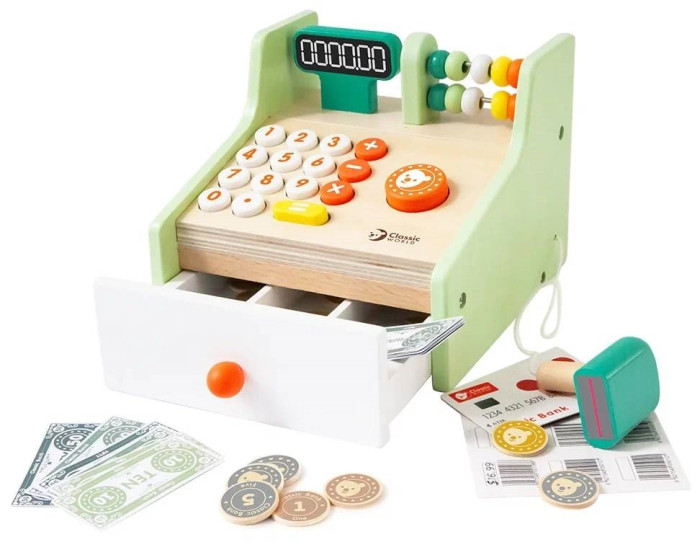 Кассовый аппарат Classic World - это отличная игрушка для сюжетно-ролевых игр, которая позволит вам разыграть множество сцен, происходящих в магазине.