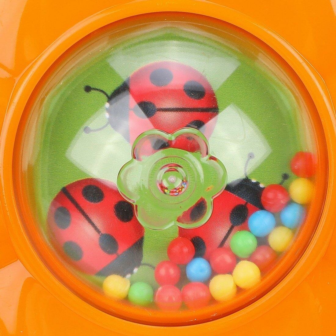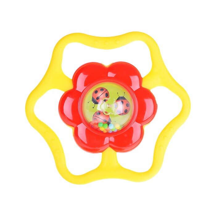 Погремушка выполнена в форме яркого цветочка, окруженного мягкими лучами солнышка. С одной стороны цветочка находятся разноцветные шарики и яркая картинка, а с другой - шарики и зеркальце. При движении шарики пересыпаются и издают «струящийся» звук. Ребенку будет очень удобно держать погремушку, так как её форма разработана специально для маленьких ручек. Погремушка-прорезыватель выполнена из высококачественных материалов и абсолютно безопасна для детей.