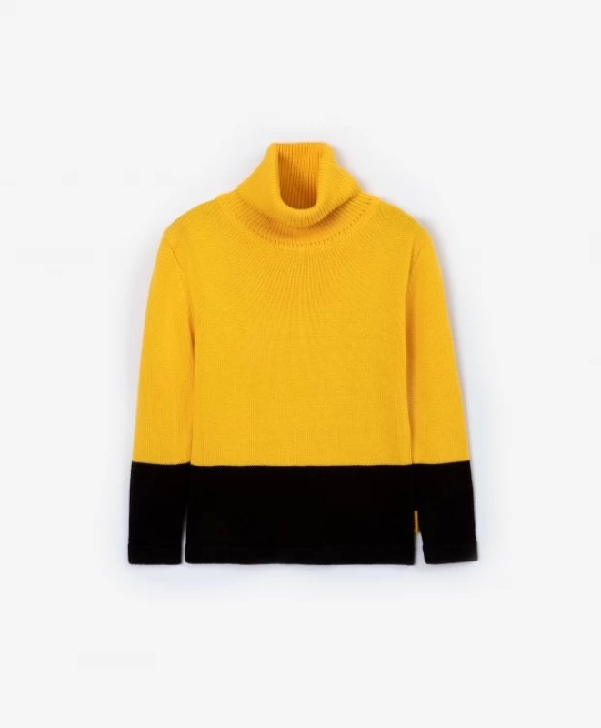 Стильная вязаная водолазка, выполненная из трехкомпонентной пряжи с содержанием шерсти - гарантия мягкости, уюта, приятных тактильных ощущений. Дизайн модели построен по принципу колорблокинга, что делает водолазку ярче, интереснее, сложнее. В оформлении модели использован резиновый шеврон с шрифтовыми элементами.