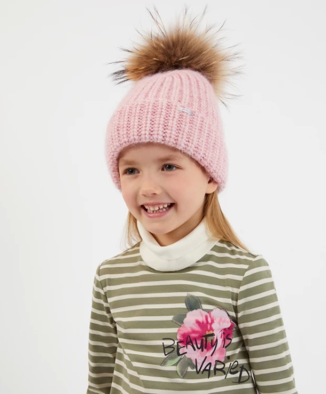 Теплая шапка на подкладке из флиса красиво завершит зимний комплект. Изюминка модели - крупная фактурная вязка, которая на меланжевой пряже смотрится особенно выразительно. Шапка выполнена из многокомпонентной пряжи с содержанием ангорской шерсти, что делает ее очень мягкой, пушистой, приятной на ощупь. В оформлении модели использована брендированная металлическая табличка. Помпон из натурального меха прикреплен к шапке с помощью тонкой атласной ленты, фиксирующей его внутри изделия. При необходимости постирать шапку, помпон можно отвязать, а потом привязать снова, продев ленту в иголку с широким ушком.