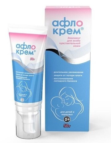 | Способ применения и дозы | наносят на чистую кожу тонким слоем два и более раз в день, равномерно распределяя. Количество наносимого крема и частота его нанесения зависит от степени сухости кожи и её индивидуальных особенностей. После нанесения эмолиент Афлокрем активно впитывается в течение нескольких минут, не оставляя на коже жирной пленки и связанного с этим дискомфорта. Создает невидимый защитный барьер, оказывает длительное смягчающее и успокаивающее действие. Борется с сухостью, шелушением, раздражением, зудом и неприятными тактильными ощущениями Афлокрем эмолиент разрешено применять |