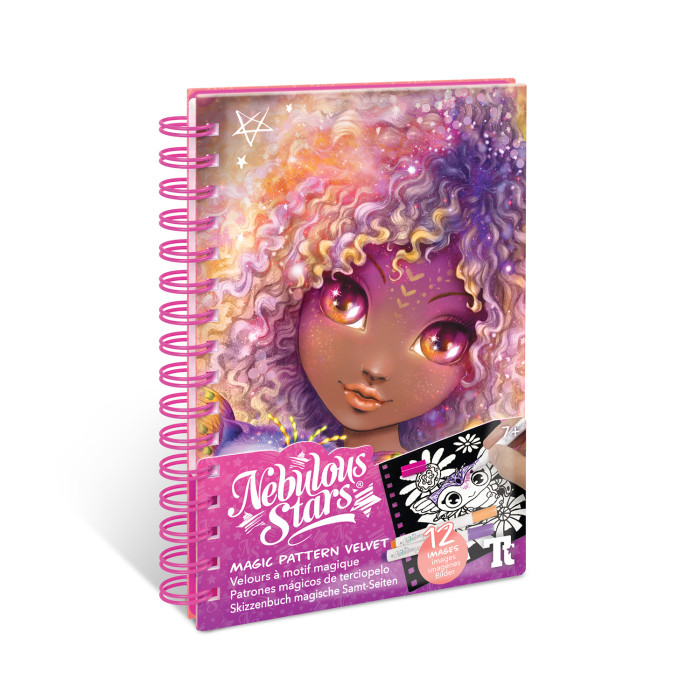 Раскраска для девочек скетчбук с бархатными страницами. Создание магических картин с помощью 12 эскизов и 5 мини-маркеров, входящих в комплект. Маркеры хранятся в специальном отсеке блокнота.