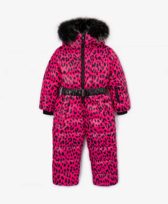 Теплый стеганый комбинезон на искусственном пуху - прекрасная возможность сделать зимнюю прогулку продолжительной и комфортной! Выполненный из влагостойкой плащовки с леопардовым принтом, на подкладке из флиса, комбинезон выглядит ярко, остро, экстравагантно. Стилизованный рисунок наделяет модель активной динамичной графикой, придающей изделию уникальность. В дизайне и оформлении модели использованы черные тракторные молнии и черные детали отделки, пояс, подкладка, создающие цветовой и фактурный контраст. На спинке изделия расположен стильный светоотражающий принт. Капюшон комбинезона завершен отстегивающимся натуральным мехом енота.
