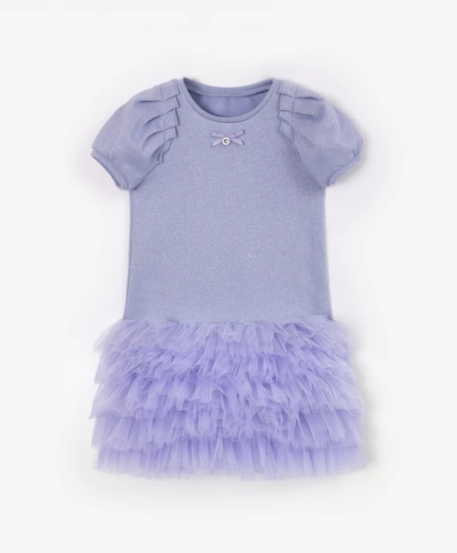 Нарядное сиреневое платье с легким деликатным люрексом - образец элегантности и комфорта! Платье трапециевидной формы выполнено из мягкого трикотажного полотна, что делает его очень пластичным, не сковывающим движений и подходящим для девочек разного телосложения. Красивый крой с заниженной линией талии, сочетание фактур трикотажа и пышной сетки, трогательные рукава-фонарики формируют выразительный имидж модели - нежный, благородный, интеллигентный. В отличие от платьев в стиле "снежинка", обильно украшенных блестками, пайетками, мишурой, сиреневое трикотажное платье Gulliver - не на один день! И для новогодних, и для рождественских праздников, и для других важных событий в жизни ребенка, платье подчеркнет стильный небанальный подход к формированию нарядного образа, выделив девочку среди сверстниц.