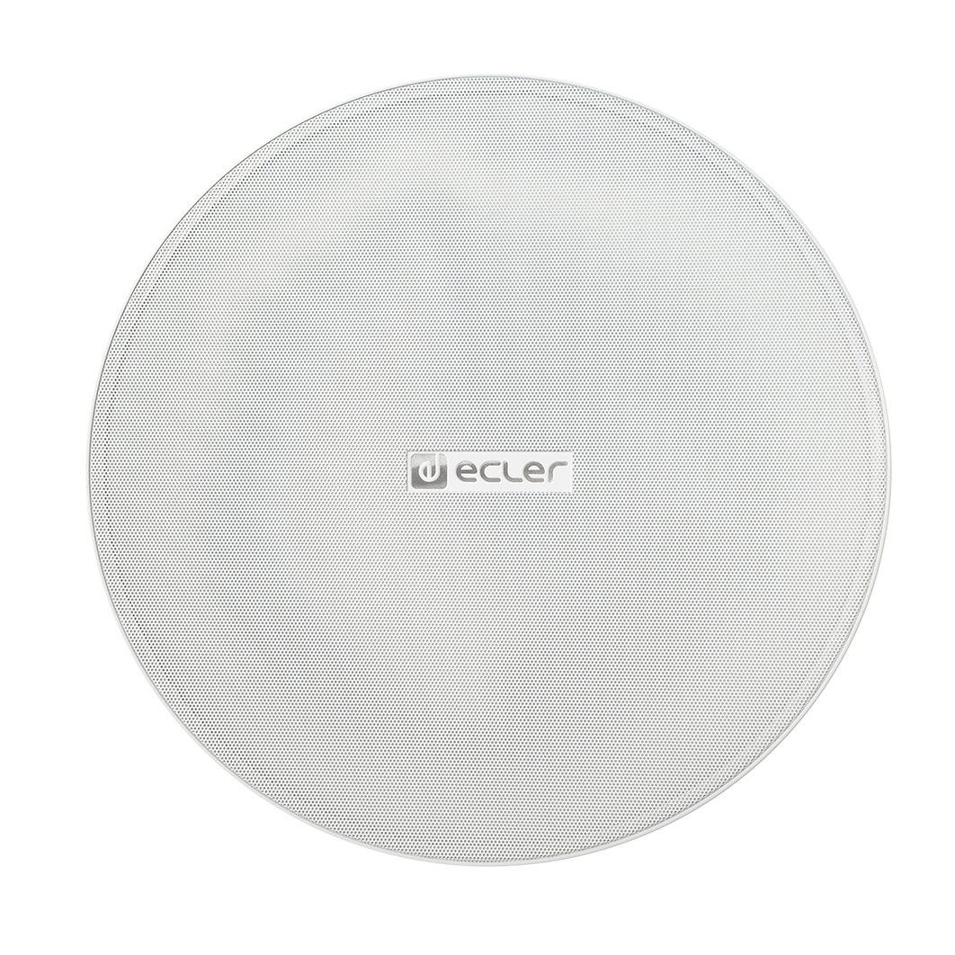 Ecler - встраиваемый сабвуфер с 8'' драйвером для низких частот с кроссовером. Способен создавать эффективную мощность до 80 Вт RMS. Оснащен 100-вольтовым линейным трансформатором, имеются отводы мощности на 3.75, 7.5, 15, 30 и 60 Вт (при 100 В). В комплект акустической системы входят защитная крышка и профиль для установки в модульный потолок.