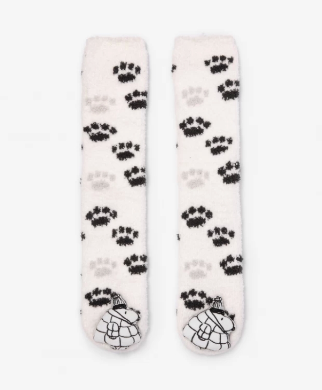 Высокие носки, выполненные из уютной велюровой пряжи, позволят ощутить себя по-настоящему дома. Очень мягкие, приятные тактильно, носки со специальным нескользящим капельным покрытием на подошве, и объемным фигуративом, могут служить тапками, добавив нотку юмора в домашний комплект. Носки упакованы в стильную подарочную коробку, что делает их приятным сюрпризом в любой праздничный(и не только) день.