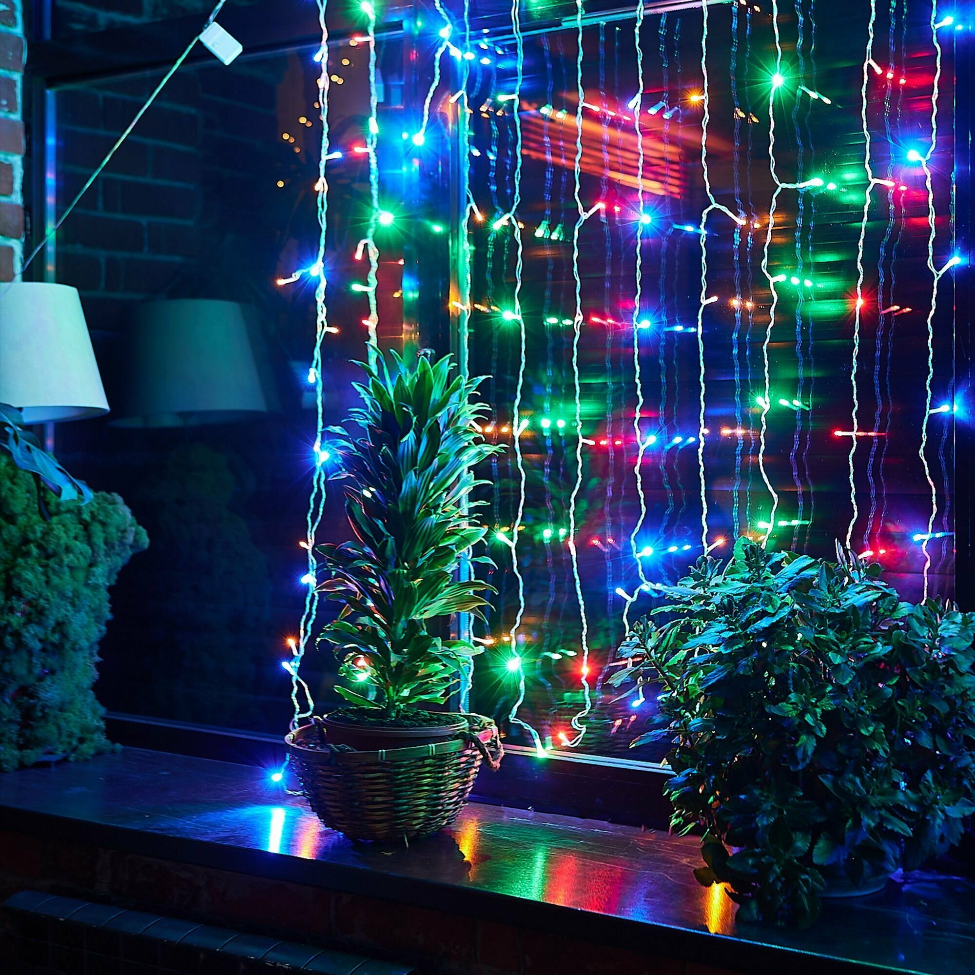 Гирлянда светодиодная занавес Uniel электрическая 3x2 м разноцветный свет 8 режимов 160 ламп цвет прозрачный