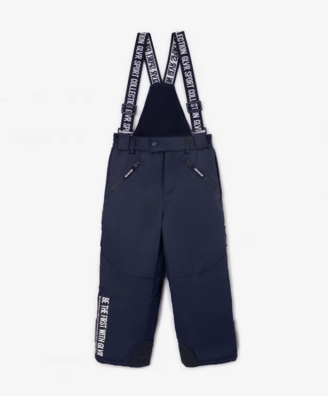 Утепленные брюки выполнены из плотной износостойкой плащовки. Именно она позволит не лишать ребенка любимых радостей детства: катания на лыжах, санках, ватрушке, картонке, обеспечивая долговечность и первозданный вид на протяжении всего времени эксплуатации вещи. Брюки имеют удобные регулирующиеся лямки, выполненные из жаккардовой эластичной тесьмы с шрифтовым изображением, прикрепленные к кокетке спинки, которая, в свою очередь, пристегивается к задней части на молнию. В оформлении брюк использованы контрастные шрифтовые принты, светоотражающая тесьма, оригинальные зиппер-пуллеры. Кроме того, брюки обладают целым рядом важных «фишек», способных сделать эксплуатацию изделия комфортной и безопасной: