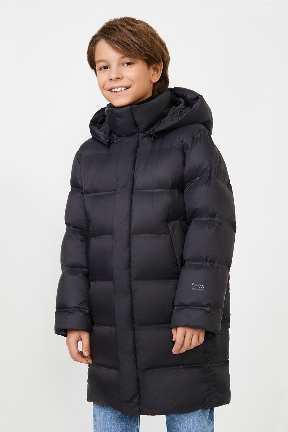 Зимнее пуховое пальто позаботится о комфорте вашего ребенка. Лаконичный «взрослый» дизайн придаст уверенности в себе, а продуманный крой и технологичность помогут справиться с морозами до -25 градусов. Пальто застёгивается на двухзамковую молнию, скрытую ветрозащитным клапаном на кнопках. По бокам расположены карманы с влагонепроницаемыми молниями и мягкой плисовой подкладкой. Капюшон с регулировкой объёма отстёгивается. Рукава оснащены внутренними трикотажными манжетами из резинки-рибана. Утеплённое пальто украшено светоотражающими принтами, благодаря чему ваш ребенок будет в безопасности в тёмное время суток. Модель можно слегка приталить при помощи внутренней утяжки.