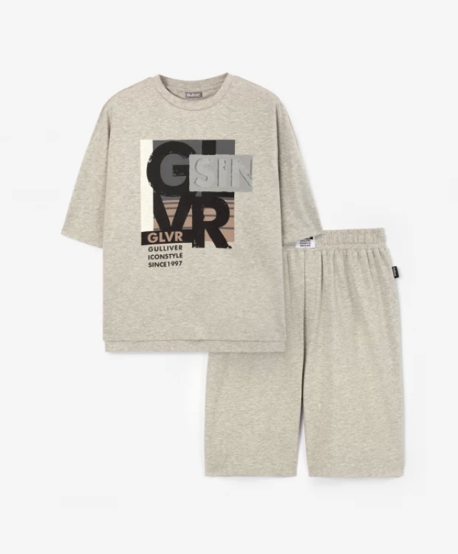 Формирование бельевого гардероба - важный, интересный и ответственный процесс. Белье должно соответствовать самым высоким стандартам качества, быть красивым, удобным, приятным на ощупь. Пижама Gulliver из меланжевого трикотажа, состоящая из шорт и футболки, - стильный и практичный вариант. Объемная футболка со спущенным плечом гарантирует свободу движений. Шорты с внутренней утяжкой, позволяющей регулировать объем пояса на мальчиках худощавого телосложения, способствуют уюту, комфорту, хорошим тактильным ощущениям. В оформлении пижамы использован контрастный принт, построенный на шрифтовой графике в натуральных тонах. Он делает пижаму небанальной, интересной для мальчиков подросткового возраста.