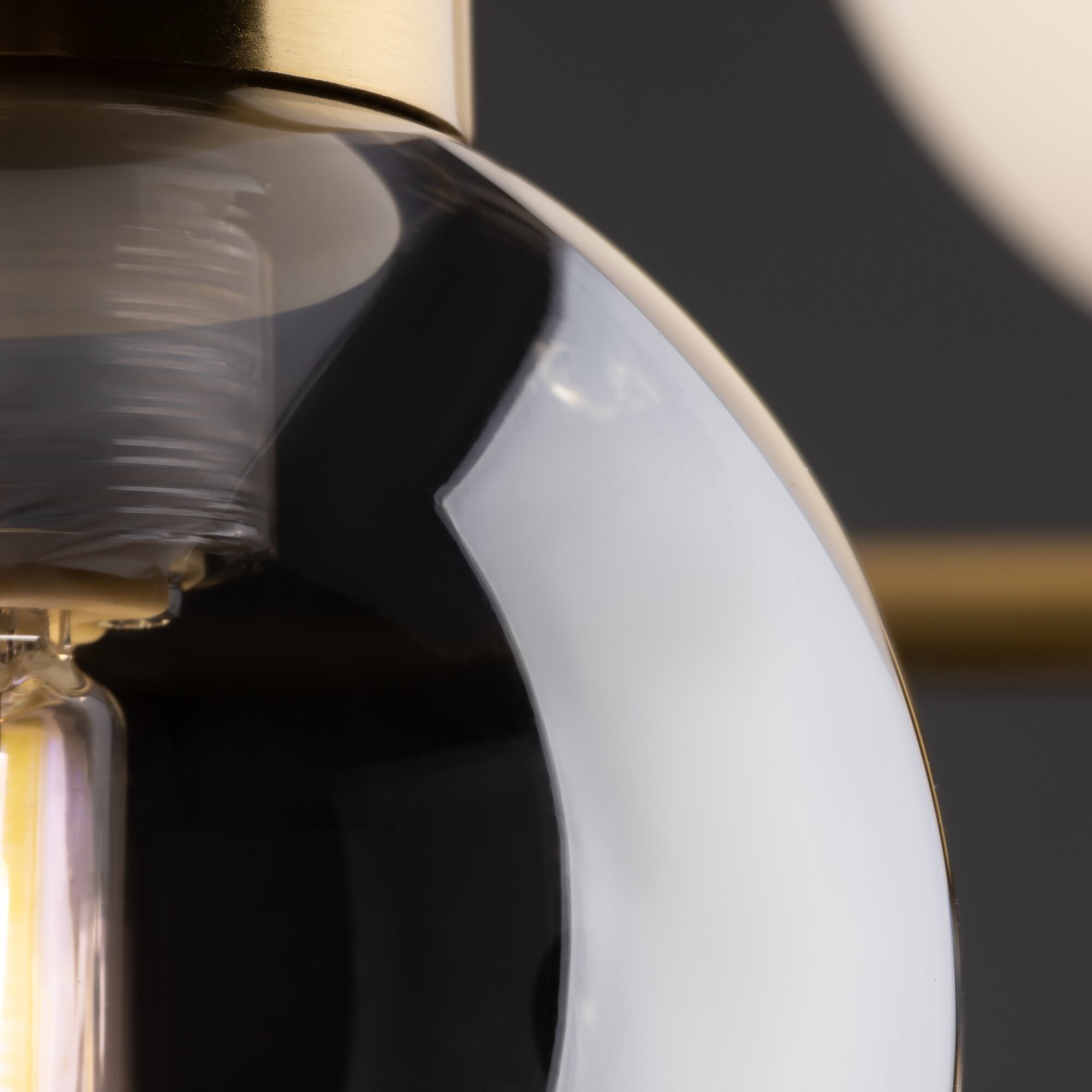 Металлическая арматура в цвете латунь. Открытые сферические плафоны в 2-х цветах: тёплый белый и тёмный гальванизированный. Плафоны разделены металлической вставкой в цвет арматуры. Источником света является лампа с цоколем G9. Для бра - цоколь Е27.