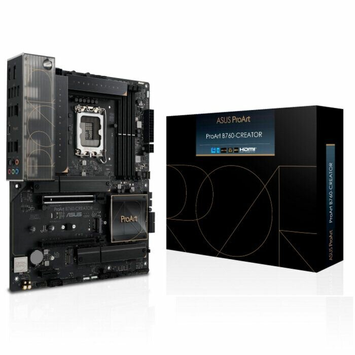 Материнская плата ProArt B760-Creator предназначена для тяжелых нагрузок, возникающих при обработке мультимедийного контента, например, трехмерного рендеринга или редактирования видео в формате 4K/8K. Надежная система питания и эффективное охлаждение позволят процессорам Intel Core 12-го и 13-го поколений проявить всю свою мощь, а для эффективного обмена данными предлагается солидный комплект интерфейсов, в который входят три слота M.2, два порта Ethernet (1 Гбит/с и 2,5 Гбит/с), разъем USB 3.2 Gen2x2 Type-C для передней панели (с технологией ускоренной зарядки Quick Charge 4+) и разъем Thunderbolt 4.