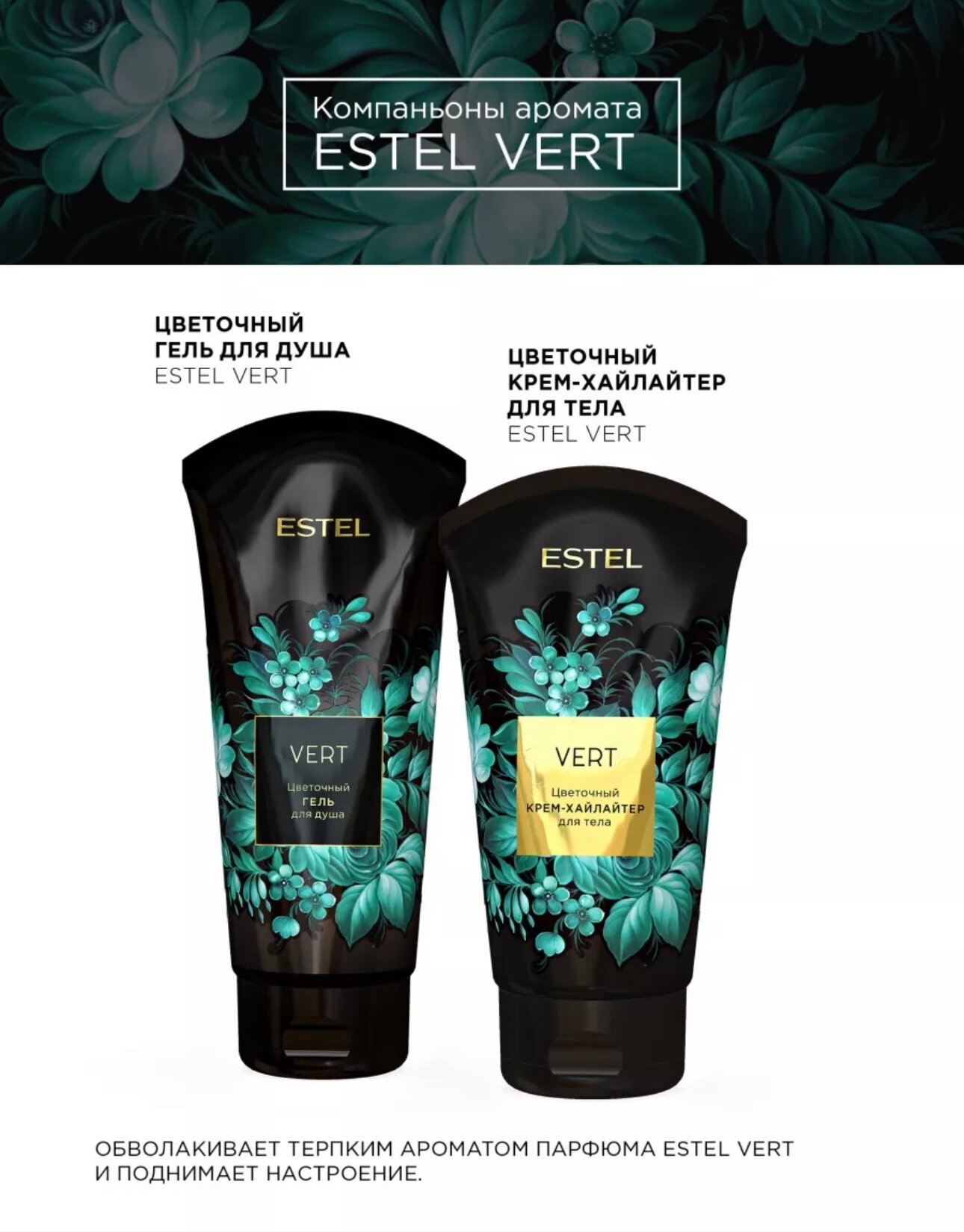 | Состав набора | Гель VERT для душа ESTEL PROFESSIONAL цветочный 200 мл; Крем-хайлайтер VERT для тела ESTEL PROFESSIONAL цветочный 150 мл. |