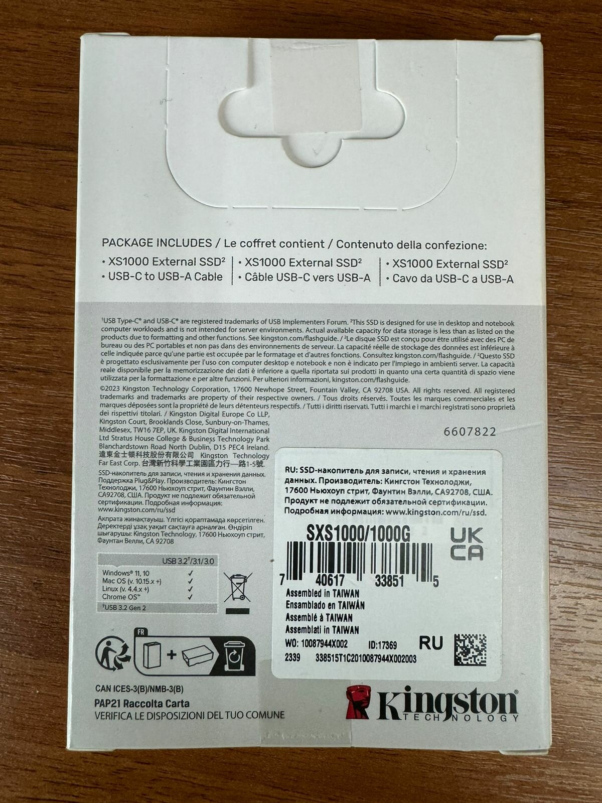 | Комплектация | SSD накопитель, Документация, Кабель USB 3.2 Type-C - Type-A |