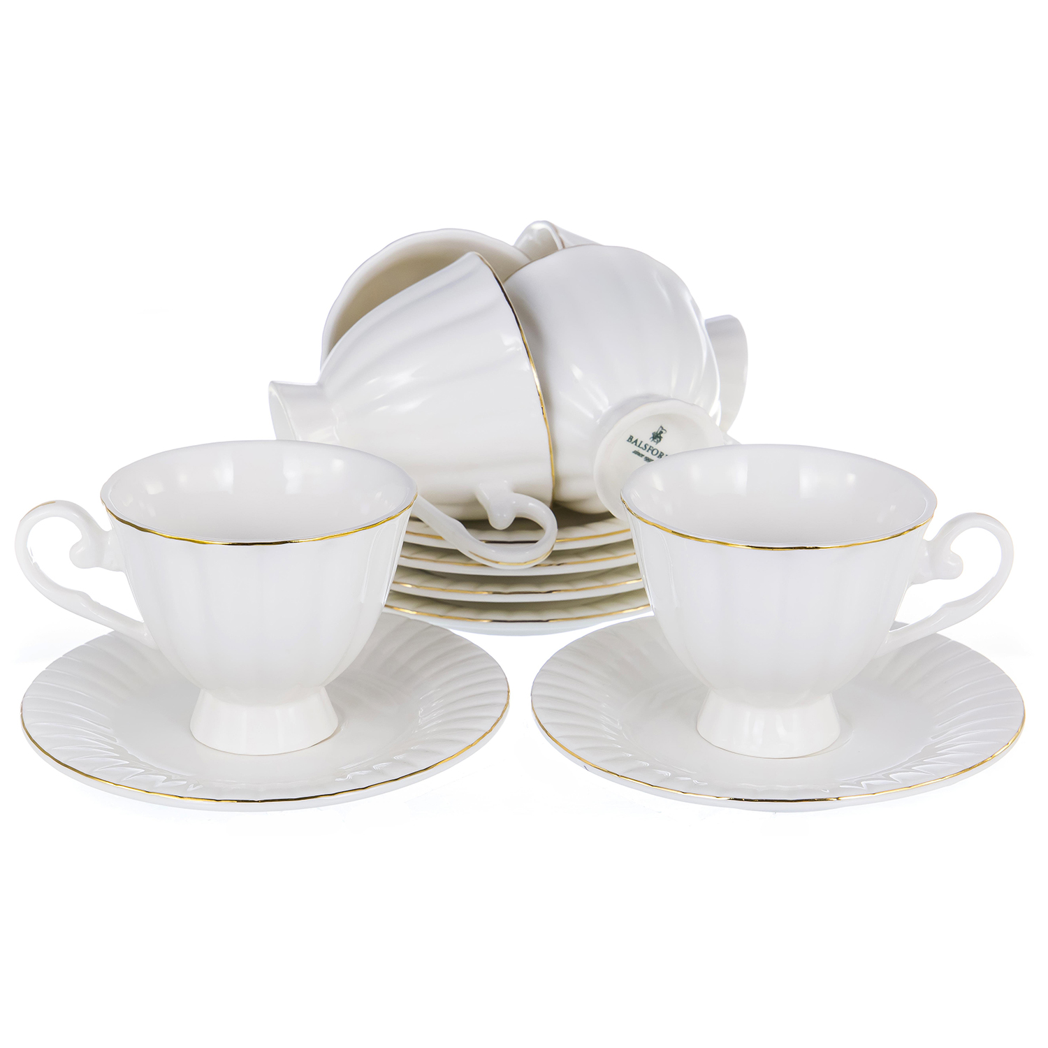 Набор кофейный BALSFORD Грация 101-01007 6пер 12пр, набор кофейный (12) 6 чашек 120мл + 6 блюдец, NEW BONE CHINA, декор БЕЛЫЙ С ЗОЛОТОМ, квадратная подарочная упаковка с окном и бантом. Сервиз выполнен из высококачественного фарфора нового поколения, благодаря современным технологиям фарфор New Bone China не уступает традиционному костяному фарфору в прозрачности, белизне и прочности, но при этом гораздо экологичнее в производстве. Если вам нравятся кофейные сервизы, которые служат десятилетиями и не выходят из моды, выбирайте посуду из фарфора в классическом дизайне. Такой кофейный набор не только красив, но и практичен.Кофейные сервизы из фарфора легкие и тонкие, но прочные и хорошо сохраняют тепло. В материале практически нет пор, поэтому чайные чашки при всей изящности не бьются при падении на мягкую поверхность и незначительных ударах. Рекомендуется ручная мойка. Нельзя разогревать в СВЧ-печи.