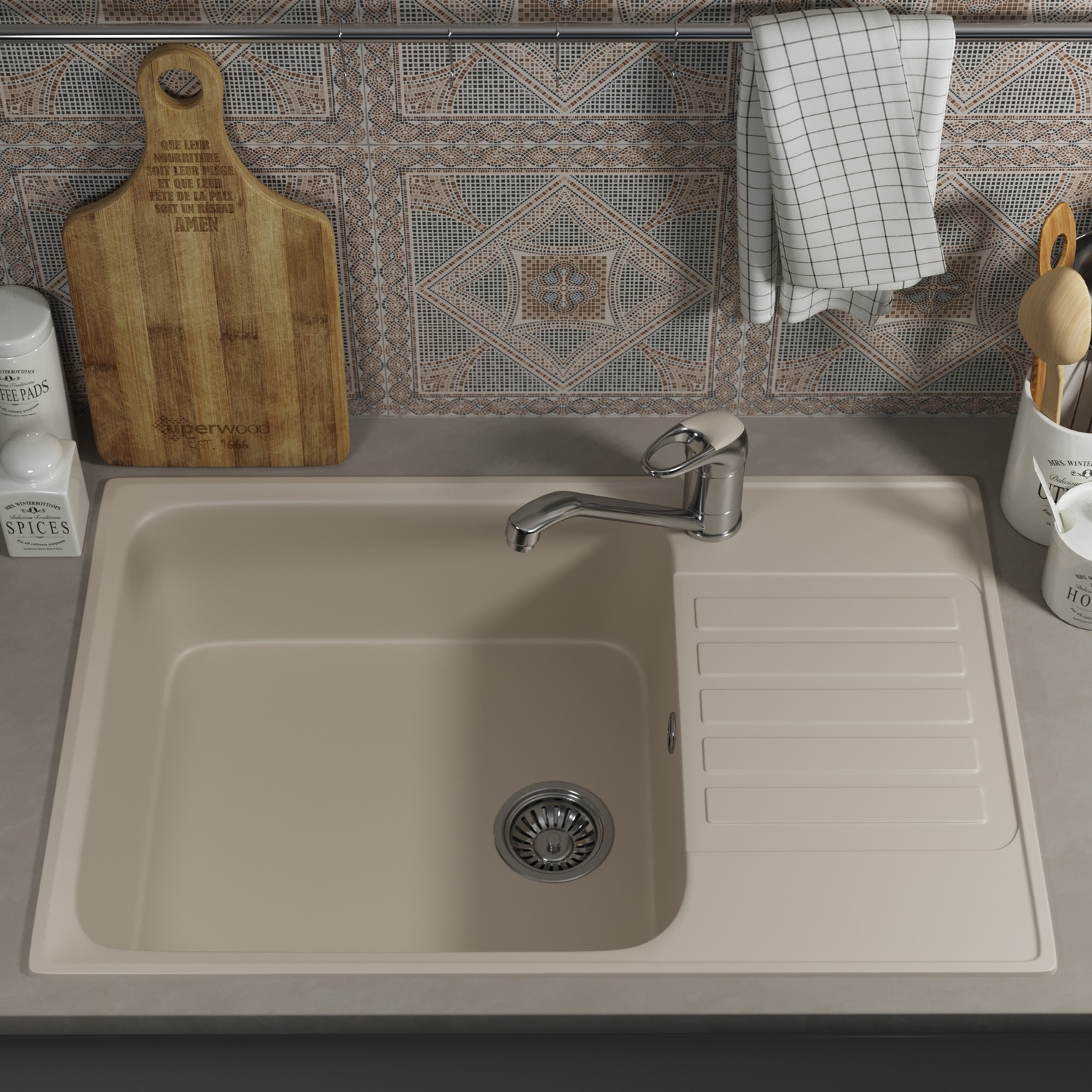 Кухонная мойка Uperwood 400 74 см 391020218 бежевая