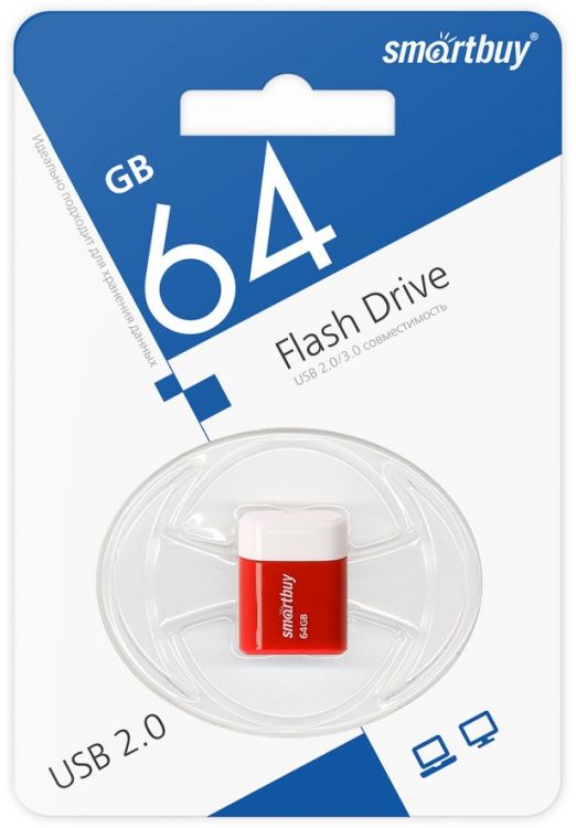 Накопитель USB 2.0 64GB SmartBuy Lara красный SB64GBLARA-R