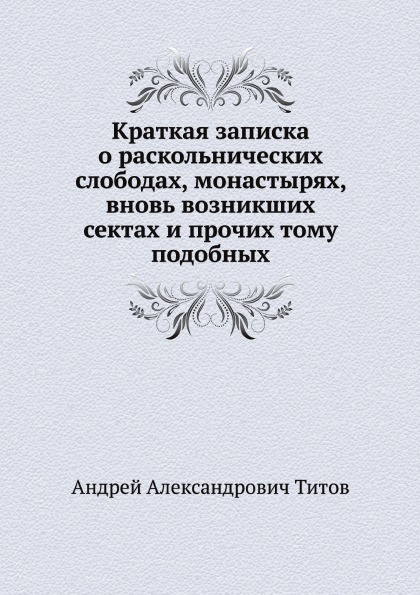 Книга Краткая Записка о Раскольнических Слободах, Монастырях, Вновь Возникших Сектах и ..., 2012