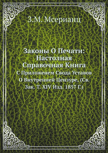 Книга Законы о печати: настолная Справочная книга С приложенем Свода Уставов о Внутренн..., 2011