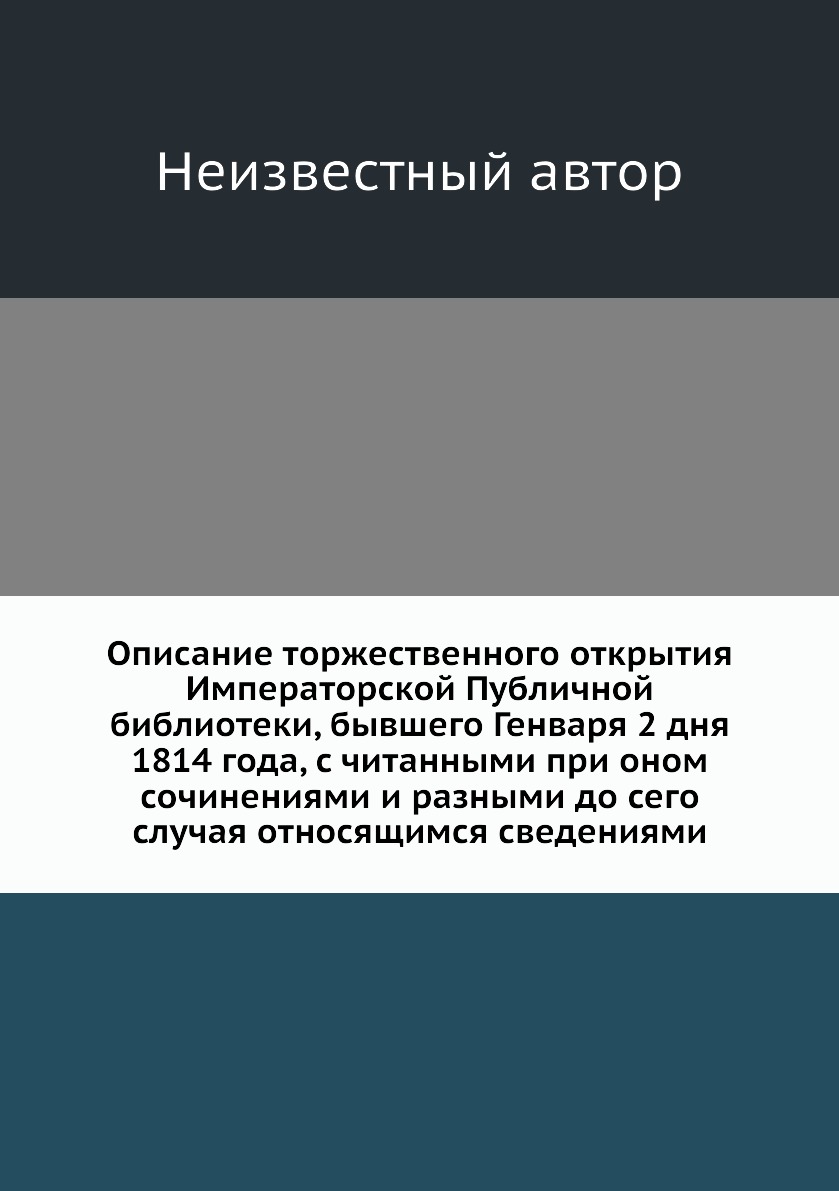 Книга Описание торжественного открытия Императорской Публичной библиотеки, бывшего Генв..., 2012