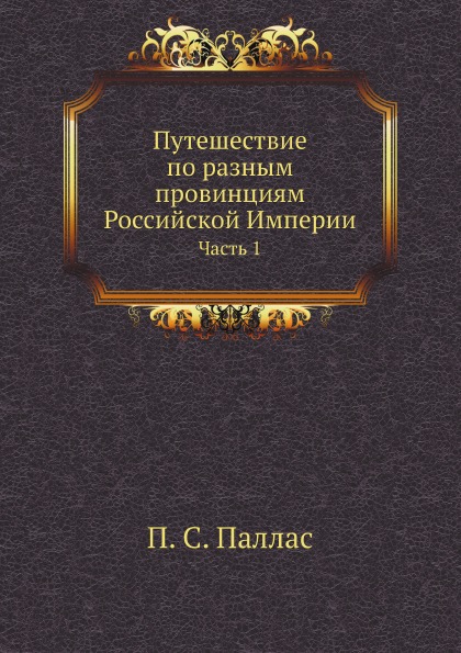 Путешествие по разным провинциям Российской Империи П.С.Палласа, доктора медицины, профессора натуральной истории и члена Российской императорской Академии наук, и Санктпетербургского Вольного экономического общества, также Римской императорской академии испытателей естества и Королевского Аглийского ученого собрания. Эта книга — репринт оригинального издания (издательство "Типография при Императорской Академии Наук", 1773 год)