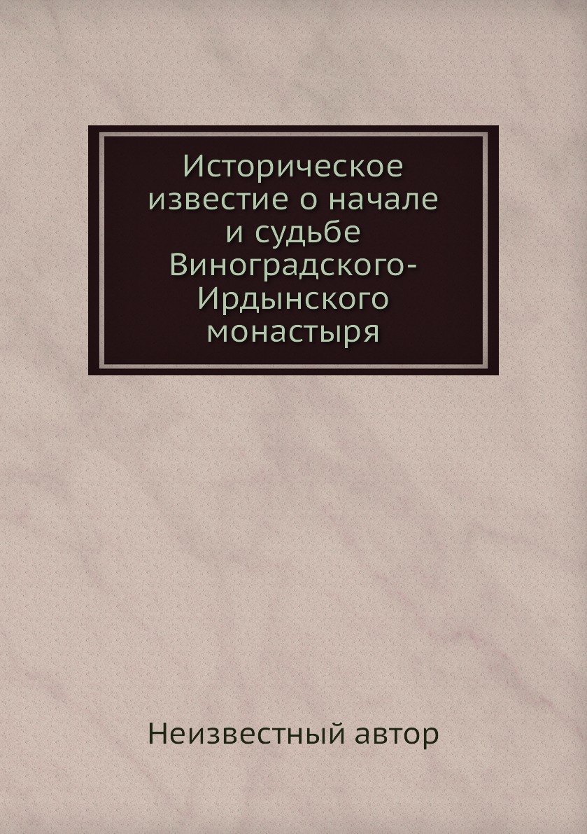 Книга Историческое известие о начале и судьбе Виноградского-Ирдынского монастыря