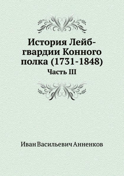 Лейб-гвардии Конный полк был сформирован в 1730 году как Конная гвардия из Кроншлотского драгунского полка, ведущего историю с 1706 года. Полк участвовал в войнах с Турцией, Швецией, Францией, подавлении Польского восстания 1831 года, участвовал в Первой мировой войне. Полк был одной из самых аристократических и блестящих частей гвардии, его командирами или шефами являлись императоры. Начальную историю Конного полка вы можете узнать, познакомившись с книгой И. В. Анненкова. Анненков Иван Васильевич генерал-адъютант, генерал от кавалерии (1814 1887). Окончив курс в школе гвардейских подпрапорщиков и кавалерийских юнкеров в 1833 году, он вышел прапорщиком в лейб-гвардии Конный полк, где прослужил до 1852 года. В 1849 году Анненковым составлена обширная «История лейб-гвардии Конного полка, от 1731 до 1848 года». Всего было подготовлено 4 части и атлас на 25 листах. История полка представлена по периодам царствующих особ, в книге широко представлен статистический материал.