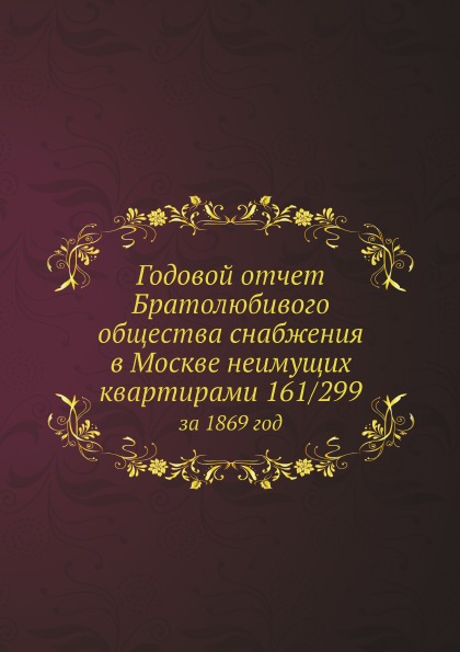 Книга Годовой Отчет Братолюбивого Общества Снабжения В Москве Неимущих квартирами 161 2..., 2012