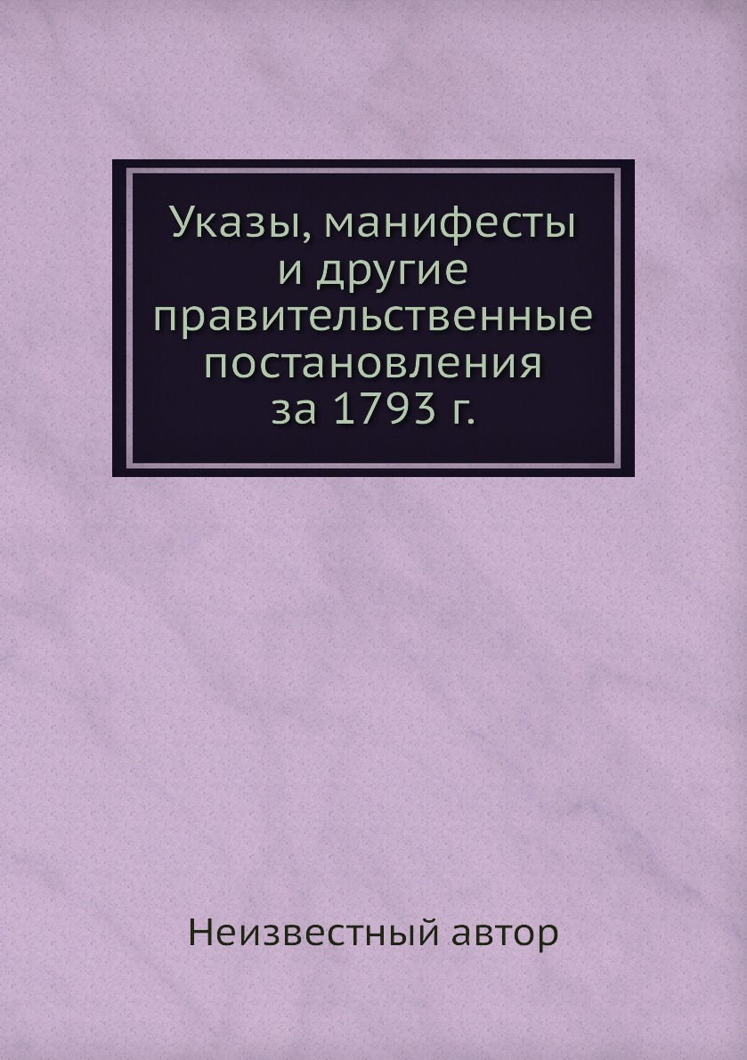 Указы, манифесты и другие правительственные постановления, объявленные из Государственной Военной коллегии, за 1793 год.Санктпетербург : Типография Государственной военой коллегии, 1794.