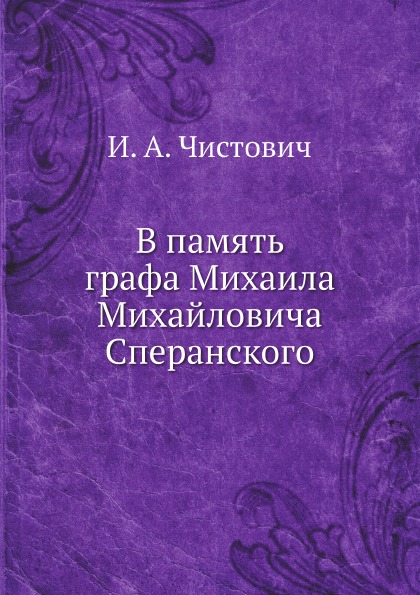 В память графа Михаила Михайловича Сперанского (на 1 января 1872 года). Работа автора посвящена личности и политической деятельности М. М. Сперанского. Эта книга — репринт оригинального издания (издательство "Санкт-Петербург", 1871 год)