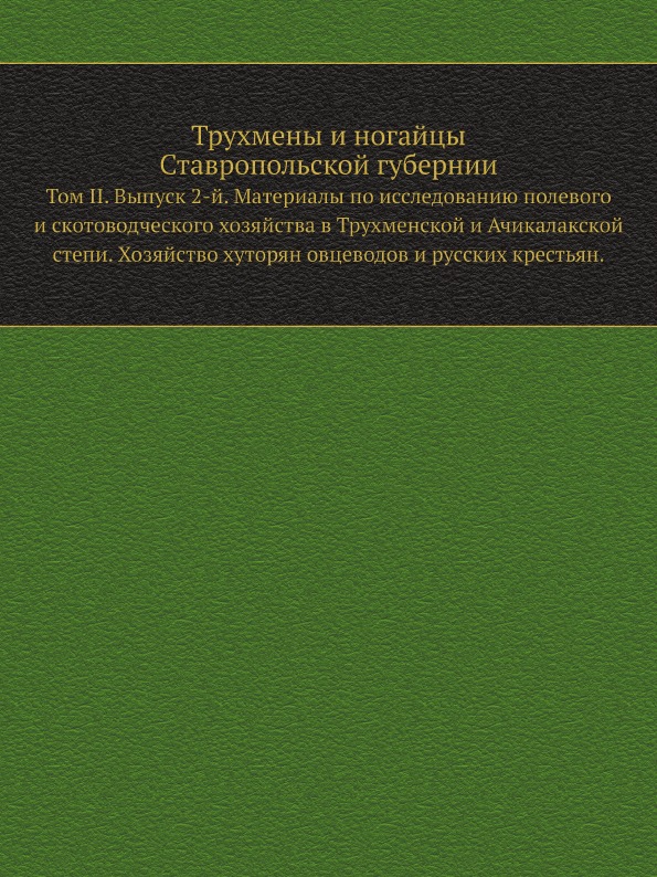 Книга Трухмены и Ногайцы Ставропольской Губернии, том Ii, Выпуск 2-Й, Материалы по Иссл..., 2012
