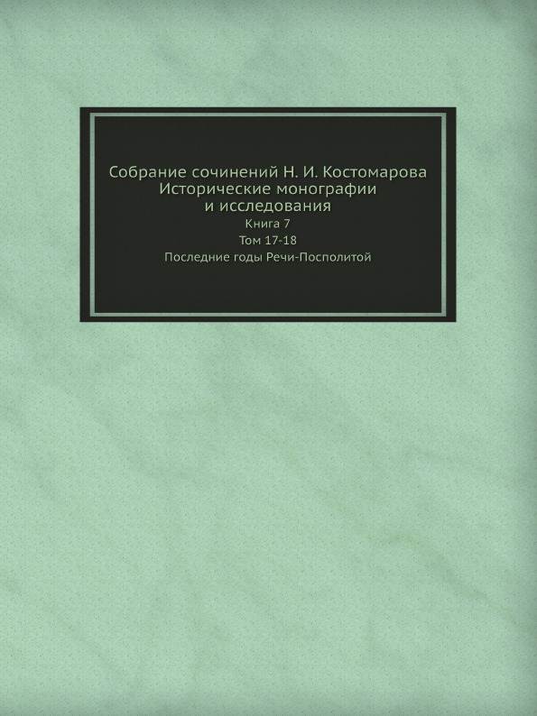 Книга седьмая, томы XVll и XVlll собрания исторических монографий Н. И Костомарова (1817-1885), историка, общественного деятеля, публициста.