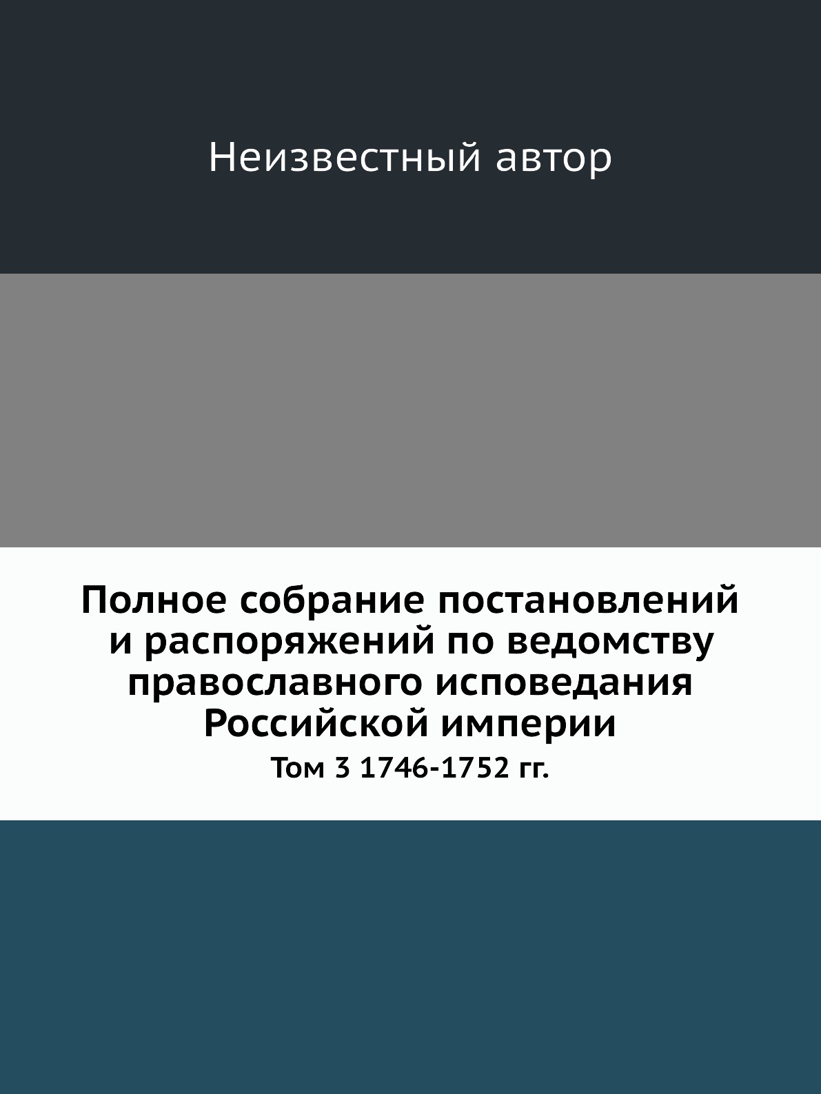 Эта книга — репринт оригинального издания (издательство "С.-Петербург, Синодальная типография", 1912 год), созданный на основе электронной копии высокого разрешения, которую очистили и обработали вручную, сохранив структуру и орфографию оригинального издания. Редкие, забытые и малоизвестные книги, изданные с петровских времен до наших дней, вновь доступны в виде печатных книг._x000D_ _x000D_ Третий том "Полного собрания постановлений и распоряжений по ведомству православного исповедания Российской империи" охватывает семь лет царствования Государыни Императрицы Елизаветы Петровны, 1745-1752 гг. В состав его вошли Синодальные и Правительственные постановления и распоряжения в разрешение и разъяснение разных вопросов церковной и церковно-государственной жизни.