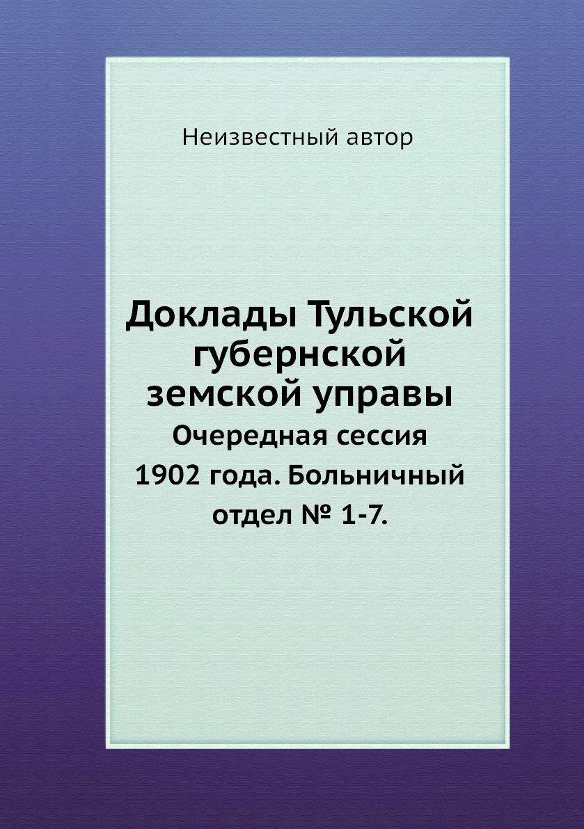 Книга Доклады Тульской губернской земской управы. Очередная сессия 1902 года. Больничны...