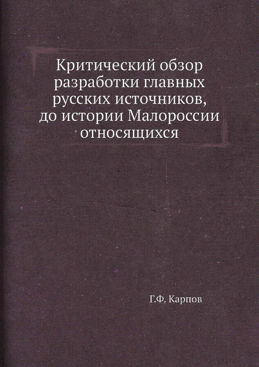 Книга Критический обзор разработки главных русских источников, до истории Малороссии от..., 2012