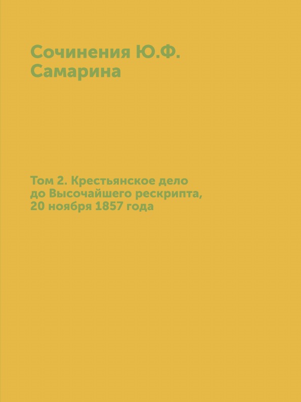 Книга Сочинения Ю. Ф, Самарина, том 2, крестьянское Дело до Высочайшего Рескрипта, 20 Н..., 2015