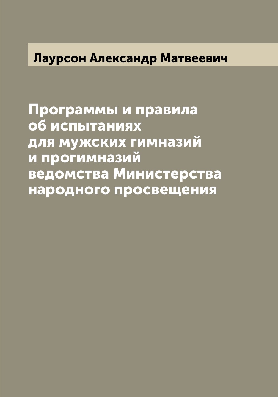Книга Программы и правила об испытаниях для мужских гимназий и прогимназий ведомства Ми..., 2022