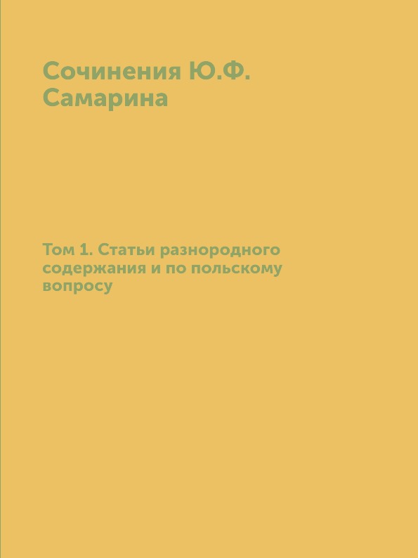 Книга Сочинения Ю.Ф, Самарина, том 1, Статьи Разнородного Содержания и по польскому Воп..., 2015