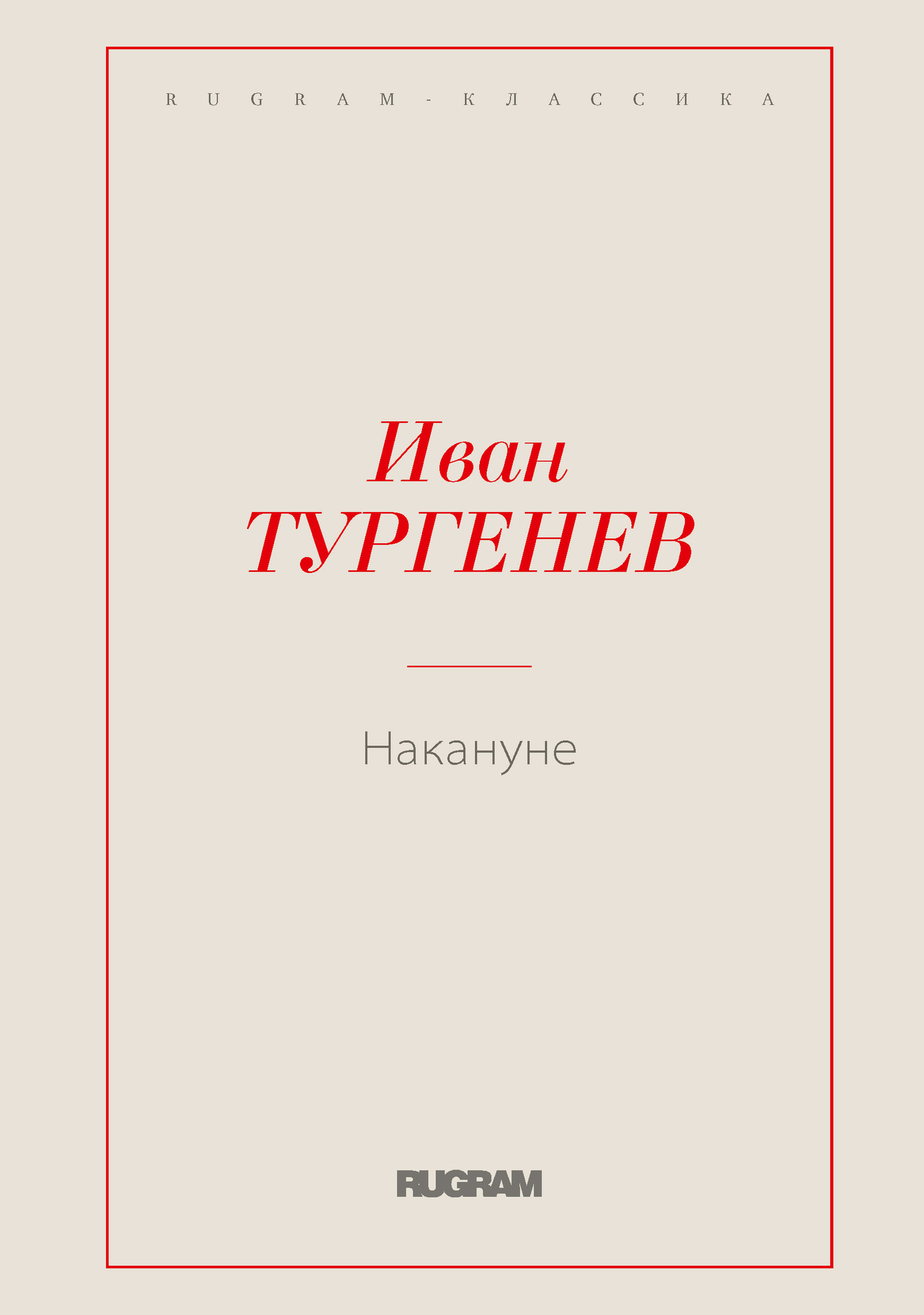 В нашем новом проекте вы найдете как книги из «золотого фонда» классической русской литературы, так и редкие, почти забытые, произведения авторов, оставшихся в тени своих великих современников. Эти книги не утратили самобытной актуальности, сегодня, как и сто лет назад, они определяют пути русской культуры, ищут ответы на «проклятые вопросы». Без этих книг невозможно понять кто мы, кем мы были, куда движемся. Мы отобрали для вас самые важные тексты русских классиков, представили их в наиболее полных редакциях, без каких либо сокращений и цензурных изъятий, и составили серию RUGRAM—КЛАССИКА. Вашему вниманию представляется книга Ивана Сергеевича Тургенева «Накануне».
