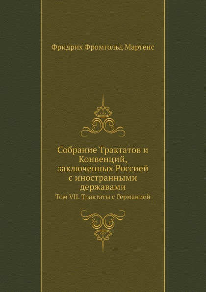 «Собрание Трактатов и Конвенций, заключенных Россией с иностранными державами» — публикация документов дипломатической истории России XVII-XX вв., изданная в 15 томах в 1874-1909 Ф. Ф. Мартенсом. «Собрание» включает документы о взаимоотношениях России с Австрией (и Австро-Венгрией) — т. 1-4; с Пруссией (Германией) — т. 5-8; с Англией — т. 9-12; с Францией — т. 13-15. Все документы воспроизведены на языке подлинника и даны в русском переводе. Каждому тому предпослано введение, многие тексты договоров снабжены комментариями. Собрание Мартенса являлось наиболее полной публикацией такого рода, многие соглашения и секретные статьи к ним были воспроизведены впервые. Книга представляет собой репринтное издание 1885 года.